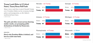 Was bleibt ihm auch anderes übrig als sich Mut zu machen. Andere stoßen ins gleiche Horn. Donna Brazile, eine ehemalige Vorsitzende des Demokratischen Nationalkomitees , sagte auf ABC, dass man Joe Biden noch nicht geschlagen sei, aber die Demokraten sollten die Umfrageergebnisse der „Times“ ernst nehmen.