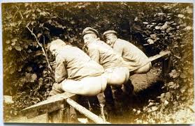 German soldiers in WWI relaxing on the “Donnerbalken” (“thunder beam”).