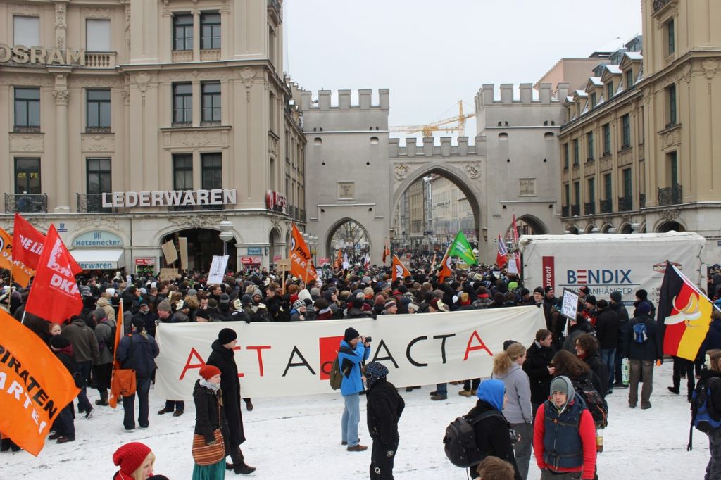 Das ich das noch erleben darf! In München gehen 16.000 Menschen bei eisiger Kälte auf die Straße, um gegen Zensur zu demonstrieren. Auf Transparenten fordern sie „ACTA ad acta!“ und wollen damit verhindern, dass das von der EU wie üblich unter Publikumsausschluss durchgewinkte Abkommen „ Anti-Counterfeiting Trade Agreement“ (ACTA), das auf Initiative der USA und Japans ausgehandelt worden war, in Deutschland in Kraft tritt.