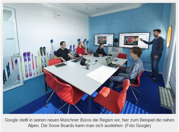 Michael Kausch schreibt auf czyslansky.net über das neue Bürogebäude von Google in München, es sei dort die Absicht gewesen, „Arbeit und kreatives Spiel miteinander kombinieren“ und zitiert einen Diskussionsteilnehmer mit den Worten: „Google will seine Mitarbeiter bespaßen.“