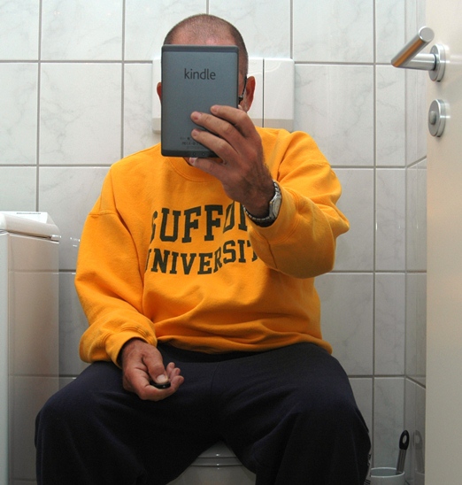 Und ich lese inzwischen fast pausenlos. Nicht, dass ich nicht vorher schon eine Leseratte gewesen wäre. Als Kind habe ich mit Taschenlampe unter der Bettdecke gelesen, lange nachdem mir meine Mutter eigentlich „Licht aus!“ befohlen hatte. Aber jetzt? Mein Kindle ist so federleicht und passt so schön in die Jackentasche, dass ich buchstäblich überall lese, wo ich gehe, stehe und sitze.  Ich lese in der Straßenbahn, aber ich lese auch auf den Weg zur Straßenbahnhaltestelle (Achtung: Laternenpfahl!). Ich lese, während meine Frau im Laden Pullover anprobiert. Wenn wir verreisen, bitte ich meine Frau zu fahren, damit ich auf dem Beifahrersitz lesen kann. Ja, ich lese sogar auf der Toilette, jedenfalls so lange, bis meine Frau an die Tür klopft und mich daran erinnert, dass andere auch mal müssen.