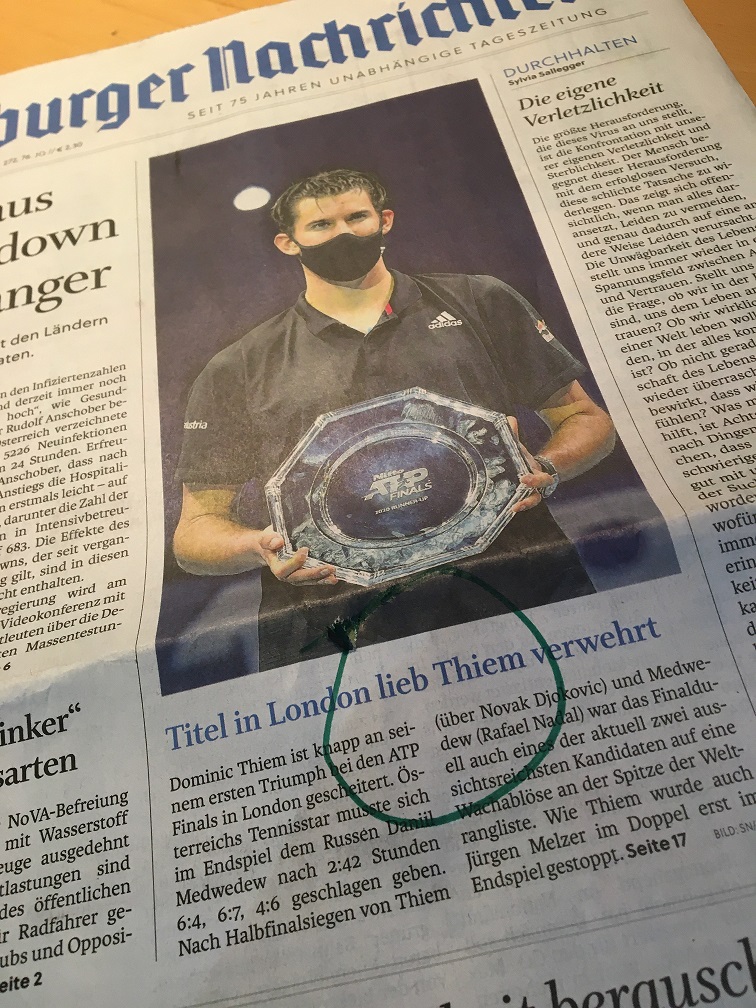 Ob die Kollegen von den Salzburger Nachrichten morgen auch so souverän reagieren werden? Aber vielleicht haben sie den Fehler ja noch gar nicht bemerkt. Irgendwann in 100 Jahren werden sie uns und Herrn Thieme vielleicht ganz verschämt ein kleines „b“ nachliefern.