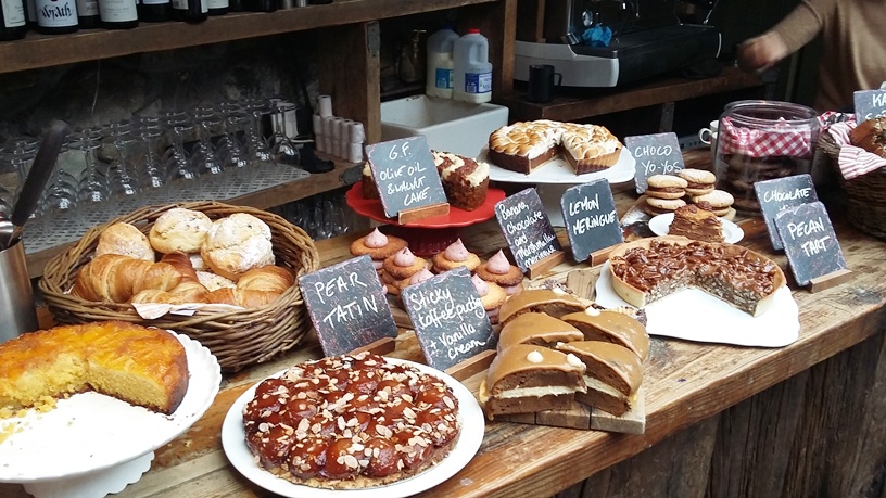 But the biggest surprise came last of all when we made our way to the counter which was loaded with some of the most scrumptious home-made desserts I have ever been privileged to gorge on: We couldn’t decide, so we made a serious attempt at ordering almost everything: chocolate banana and marshmallow cream pie, lime meringue pie, polenta cake topped with slices of bitter orange, and “pear tartin” (a kind of upside-down fruit cake). We were sadly forced to miss the pecan tart, the olive oil and walnut cake, the choco yo yos and the sticky toffee pudding, but there are limits.