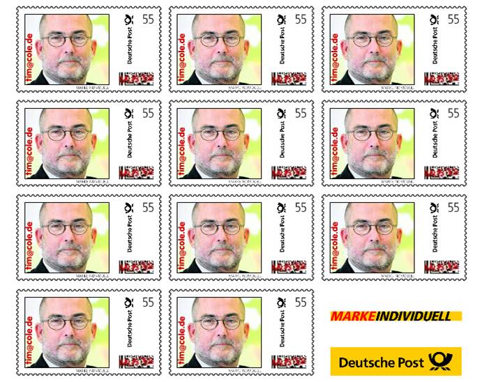 „Marke Individuell“ heißt dieses Angebot. Die Post nennt sie „die Briefmarke für mehr Aufmerksamkeit“. Man kann sie in wenigen Minuten selbst gestalten mit Hilfe eines einfachen Online-Tools, den die Post auf ihrer Website bereitstellt. Nach ein paar Tagen bringt der Briefträger den Bogen mit lauter selbstgestalteten Briefmarken nach Hause, und man kann sie wie eine ganz normale Briefmarke verwenden, sie also auf Briefumschläge oder Päckchen kleben, und sie werden tatsächlich dem Adressaten zugestellt.