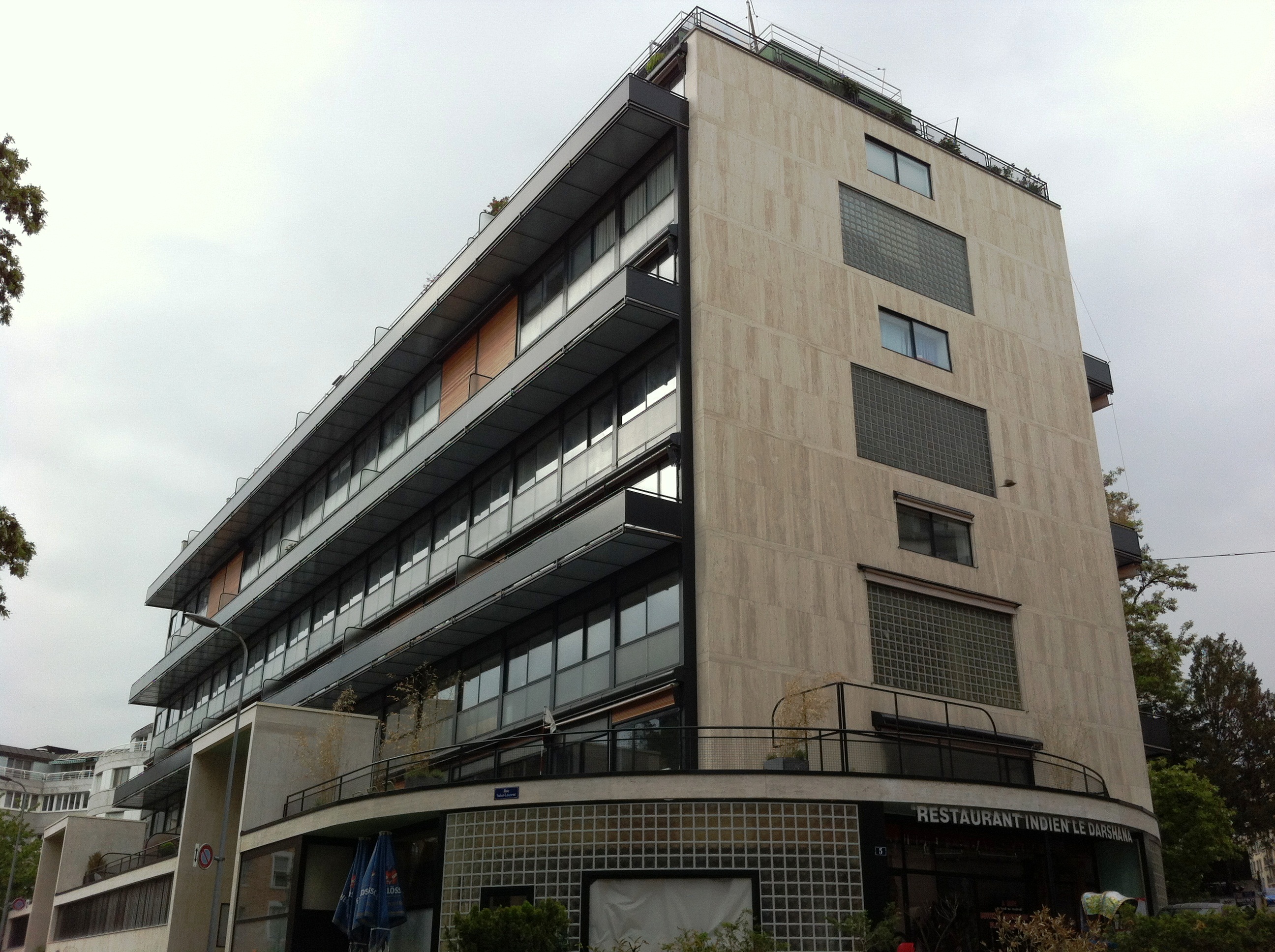 Die Bauten Le Corbusiers gefallen also nicht jedem, aber wer sie liebt, der ist ihnen schnell verfallen. So wie meine Freundin Danielle, eine zärtliche, ebenso feingliedrige wie feingeistige Französin, die früher mit ihrem Mann Michel in München lebte. Als sie vor ein paar Jahren nach Genf zogen, entdeckte sie am Rande der Innenstadt ein ziemlich heruntergekommenes Bauwerk aus Stahl und Glas, das sie immer mehr zu faszinieren begann. Sie recherchierte und fand heraus, dass Le Corbusier das Wohnhaus zwischen 1930 und 1932, als er auf der Höhe seines Ruhmes stand, für den Schweizer Industriellen Edmond Wanner gebaut hatte. Es umfasst 45 Duplex-Wohnungen, die weitgehend aus vorgefertigten Bauteilen entstanden und in deren lichtdurchströmtem Design er seine berühmten „Fünf Punkten der Neuen Architektur“ (Betonstützen, Dachgärten, Langfenster, völlig freie Grundriss- und Fassadengestaltung) schon fast beispielhaft umsetzen konnte.