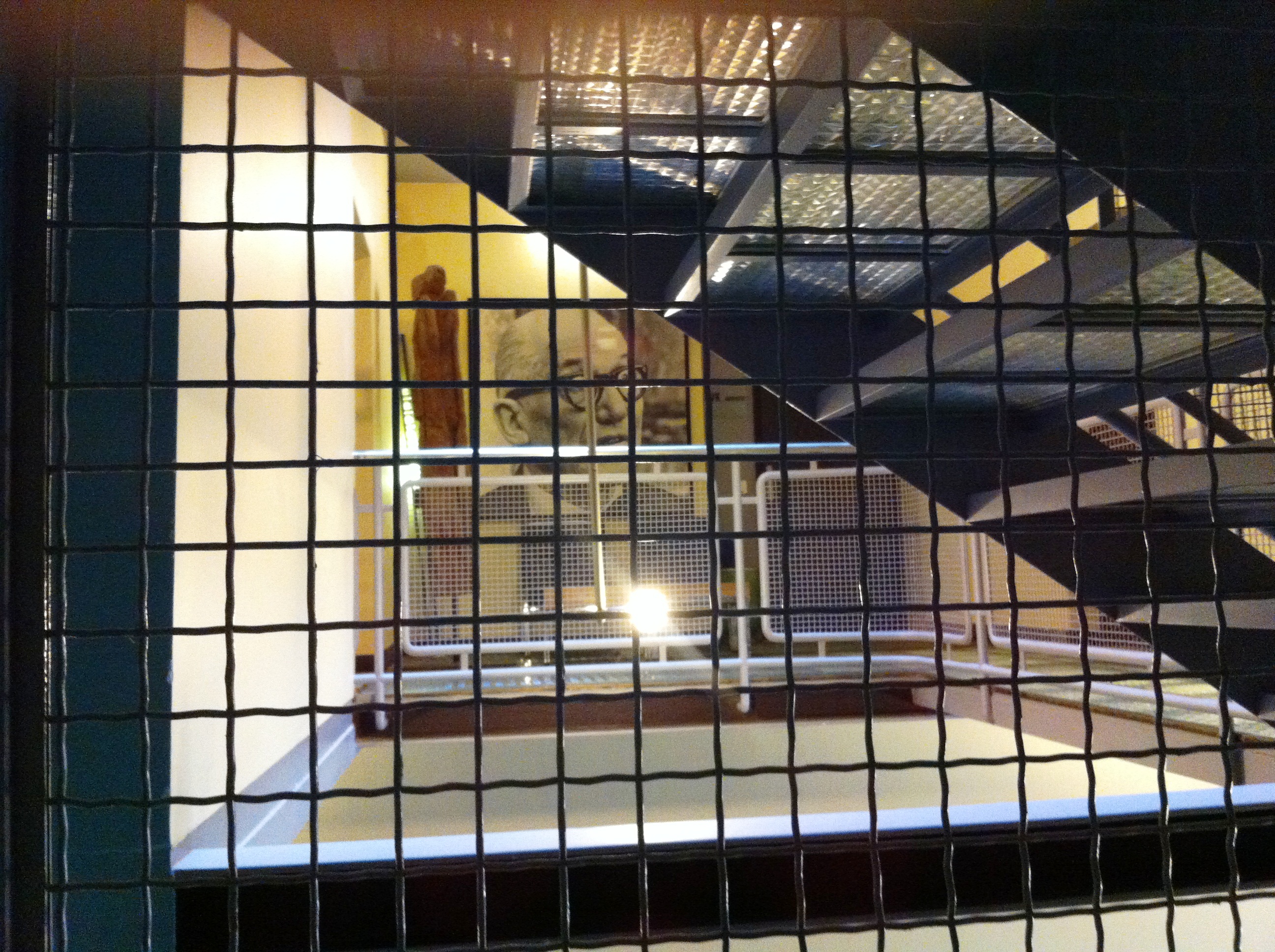 Vor dem Büro des Architekten in der Maison Clarté steht eine Art "Schrein", der dem großen Architekten Le Corbusier geweiht ist.