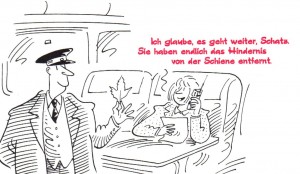 BahnIn der Eisenbahn ist die Sache leider nicht so einfach. Bis heute weigert sich die Deutsche Bahn AG, den als Zug der Zukunft hochgejubelten ICE mit eigenen D-Netz-Empfängern auszustatten. Mobiltelefon-Besitzer müssen also wie alle anderen beim Zugtelefon anstehen und kriegen dann in aller Regel nur das Besetztzeichen des hoffnungslos überlasteten alten C-Netzes zu hären. Wer öfter eine bestimmte Strecke mit der Bahn fährt, kennt allerdings meistens schon die Abschnitte, auf denen sich das Handy zumindest kurzzeitig einloggt. Außerdem kann man den Halt im Bahnhof nutzen, um kurz auszusteigen und ein wichtiges Telefonat vom Bahnsteig aus zu erledigen; beispielsweise um der Frau zu sagen, dass der Zug wie üblich eine halbe Stunde Verspätung hat und sie deshalb bitte ohne Sie ins Theater gehen soll.