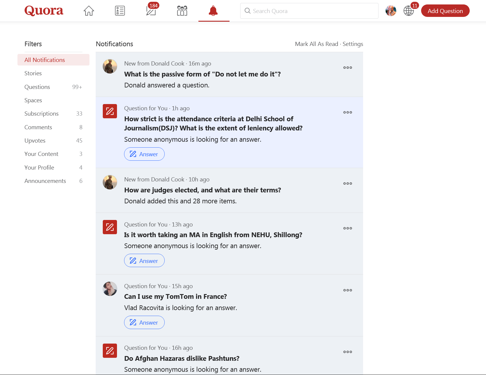 Morgens, wenn ich den Computer anmache, ziehe ich zuerst E-Mail, dann lese  ich die New York Times und die Süddeutsche und gehe dann Quora um zu schauen, was es Neues gibt. Ich browse mich durch völlig hirnrissige oder überflüssige Fragen, die Google in Sekunenbruchteilen beantwortet hätte. Und dann bleibe ich irgendwann bei einer Frage hängen, wo es in meinem Hinterkopf zu rumoren beginnt und ich mir sage: „Ja, das wolltest du auch schon immer wissen!“ Oder das Thema ist so völlig abstrus und abgehoben, dass es mich reizt, eine Antwort zu finden. Und dann gibt es Dinge, die ich als Mensch, der auf ein langes und interessantes Leben zurückblickt, aus dem Effeff beantworten kann. Und ich tue es – stundenlang, Tag für Tag.