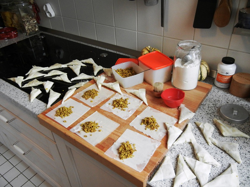 Just finished a batch of chicken and masala samosas. Call it snack mass production. Should last a few days, I hope.