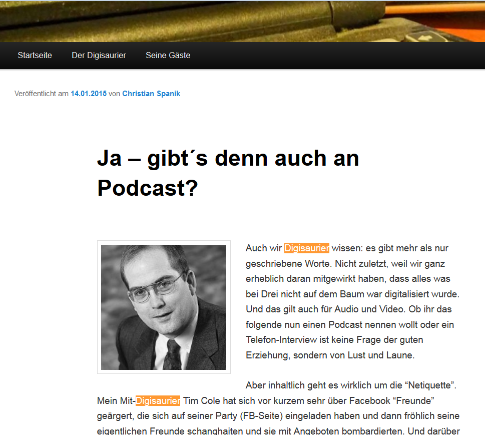 Einer von ihnen ist Christian Spanik, der in den 90ern und 2000ern für das ZDF und 3SAT die Computersendungen gemacht hat und der inzwischen, wie ich, im Salzburgischen lebt, wo er vor allem WebTV macht, aber auch eine Website betreibt, die er „Digisaurier“ nennt und auf der es um Erfahrungen und Erzählungen aus den frühen Tagen des PCs und des Internets geht.