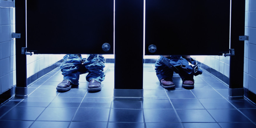 Women using public toliets, low section, blue tone